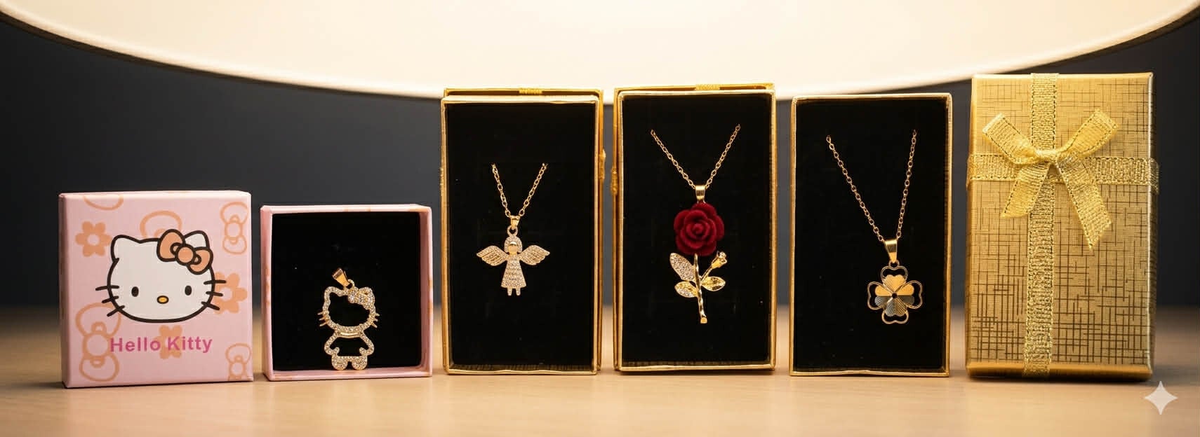 Collier rose rouge / Collier ange / Collier "Hello Kitty" / Collier Trèfle à 4 feuilles / Collier Coeur*