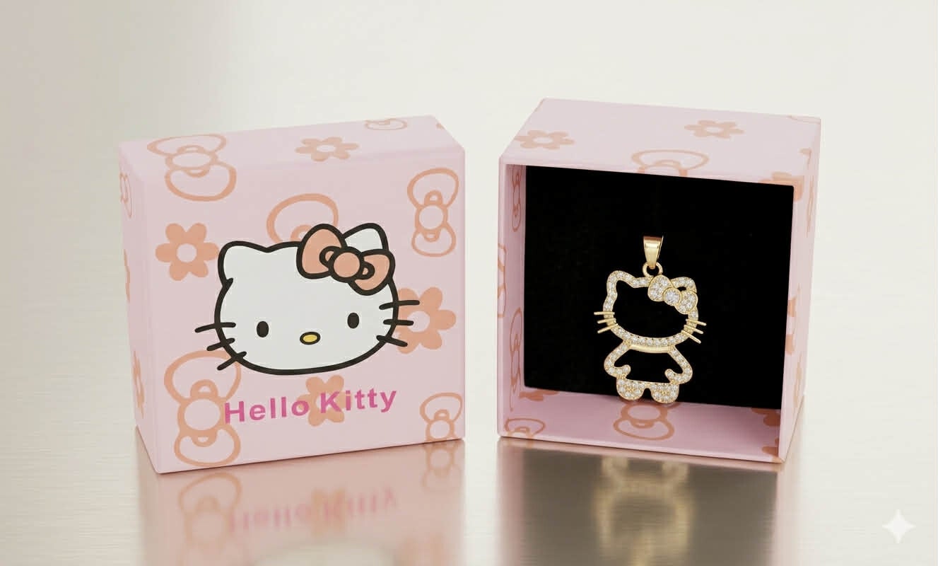 Le pendentif, finement orné de pierres scintillantes, dessine les contours du visage et du nœud emblématique du personnage avec une touche de glamour. Ce bijou incarne une fusion parfaite entre fantaisie et élégance.