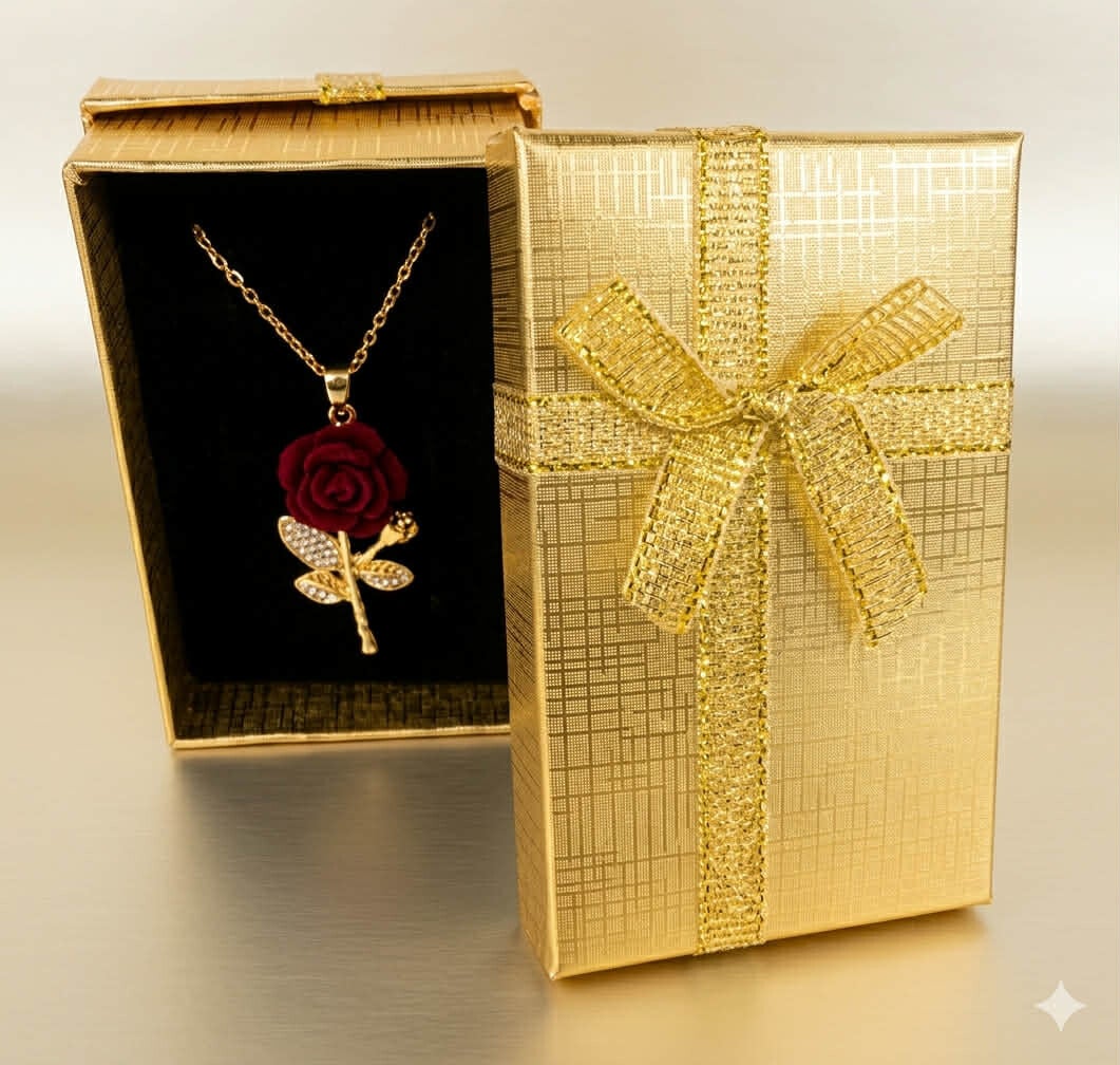 Ce collier raffiné en forme de rose rouge est une véritable déclaration d’amour et d’élégance. Son pendentif délicatement travaillé représente une rose intense et romantique, symbole intemporel de passion et de tendresse.