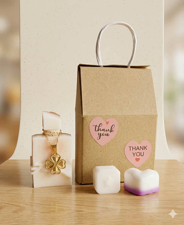 Présenté avec soin dans un pochon en organza rouge et accompagné d’un sachet cadeau décoré “Thank You”, ce collier est prêt à être offert.