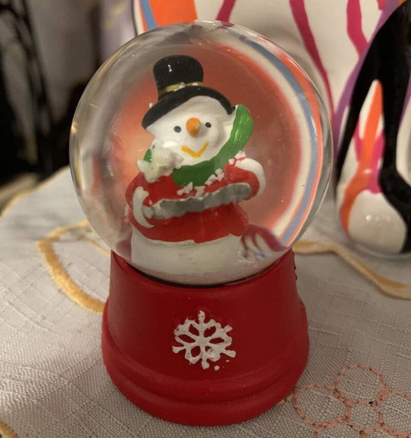 Retrouvez la magie de l’hiver et la douceur des souvenirs d’enfance avec cette adorable petite boule à neige. À l’intérieur, un joyeux bonhomme de neige coiffé de son chapeau noir et vêtu de rouge vous sourit, entouré d’un tourbillon de flocons scintillants.
