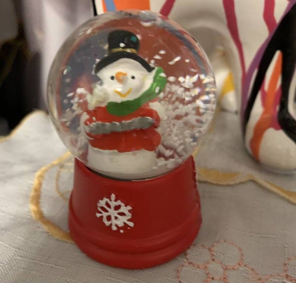 Son socle rouge décoré d’un flocon blanc ajoute une touche festive et chaleureuse, parfaite pour les fêtes de fin d’année ou pour décorer un coin souvenir.