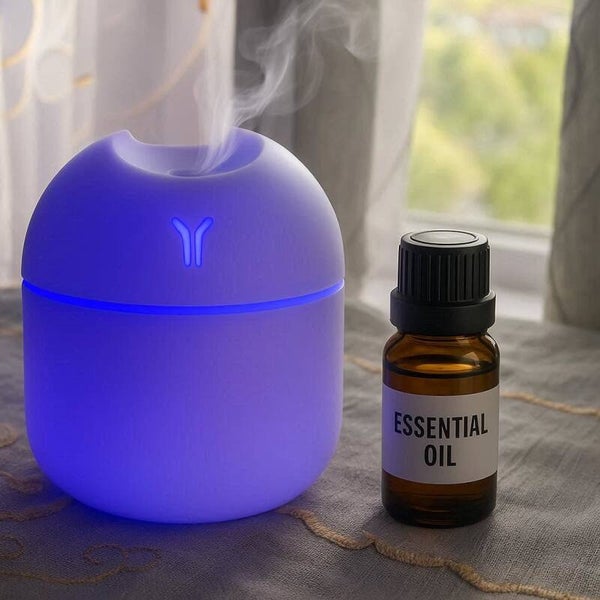 Apportez une atmosphère douce et relaxante à votre intérieur grâce à ce mini humidificateur d’air USB, à la fois brumisateur à ultrasons silencieux et diffuseur d’huiles essentielles.