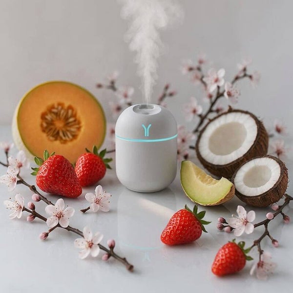 Afin de pouvoir l'utilisé directement, nous vous offrons en même temps, l'huile essentielle à mettre dans votre diffuseur pour y diffuser l'odeur de votre choix, à savoir : fraise chantilly, melon ou coco.